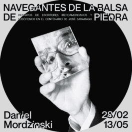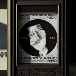 Visual identity for Daniel Mordzinski’s "Navegantes de la balsa de piedra - Retratos de escritores iberoamericanos y lusófonos en el centenario de José Saramago" exhibition. (Silvadesigners, José Saramago Foundation, Cervantes Institute)